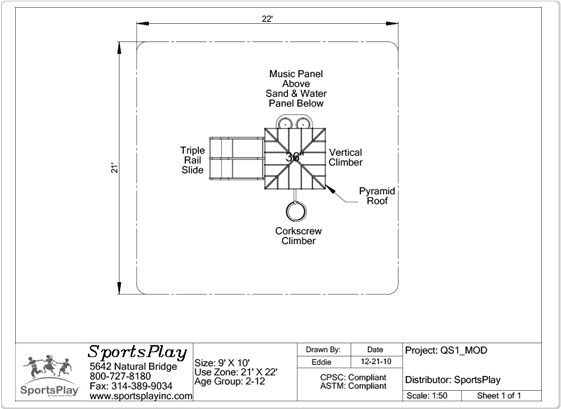 - The Quick Ship Play Structure 250 Includes One Raised Platform, Music Panel, Sand and Water Panel, Vertical Climber, Corkscrew Climber, Pyramid Roof, and Triple Rail Slide